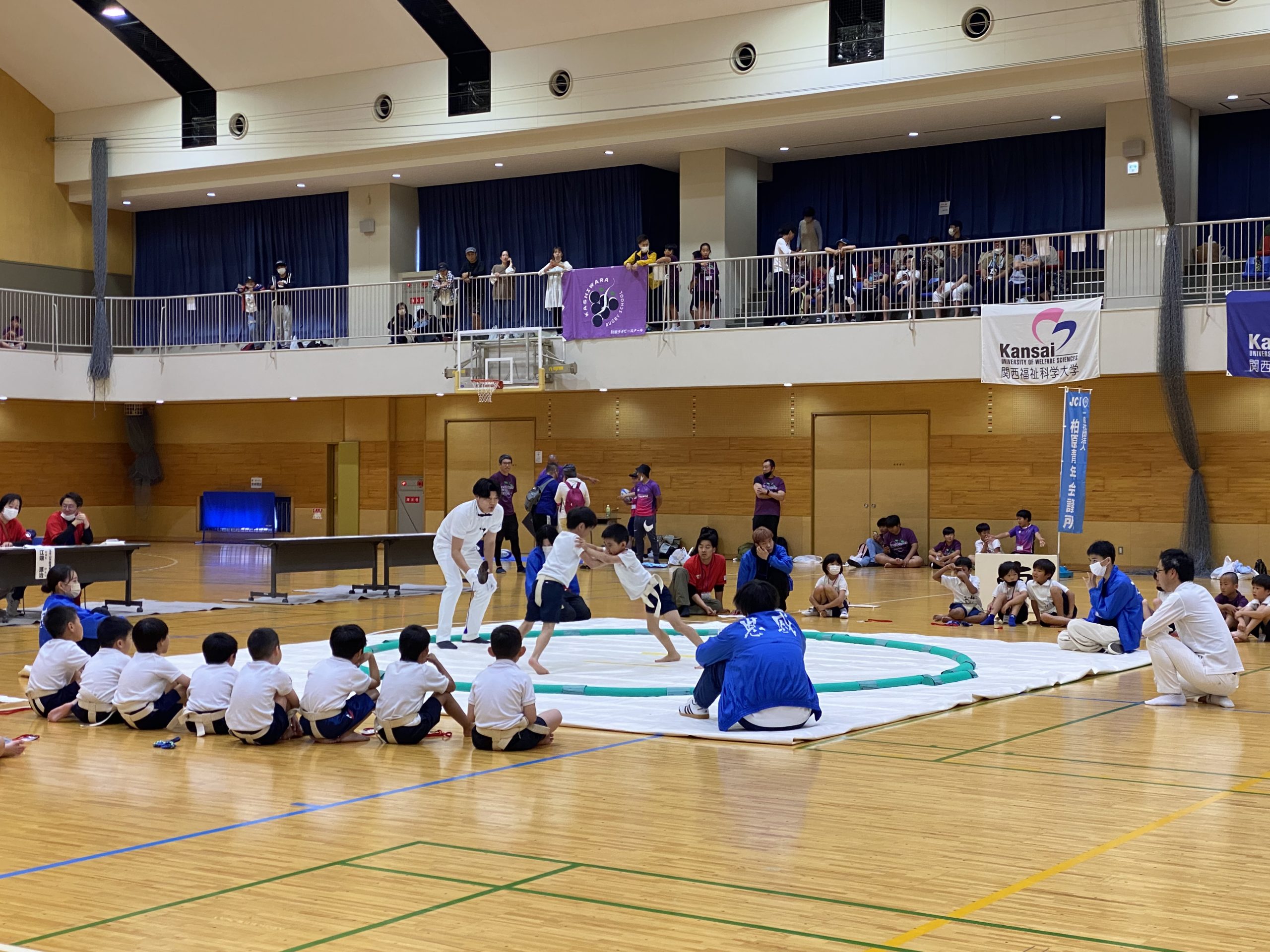 柏原青年会議所主催のちびっこわんぱく相撲を総合体育館Do夢で開催!地域連携クラブの学生たちが運営のサポートをします。小学生力士たちをサポート!応援!