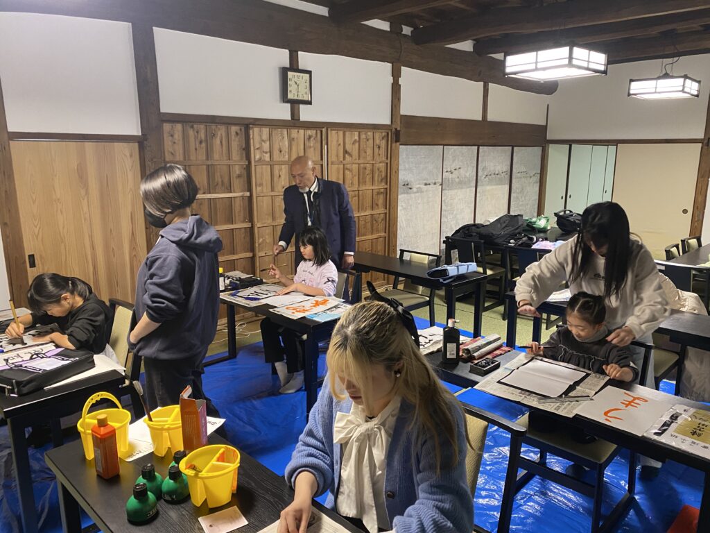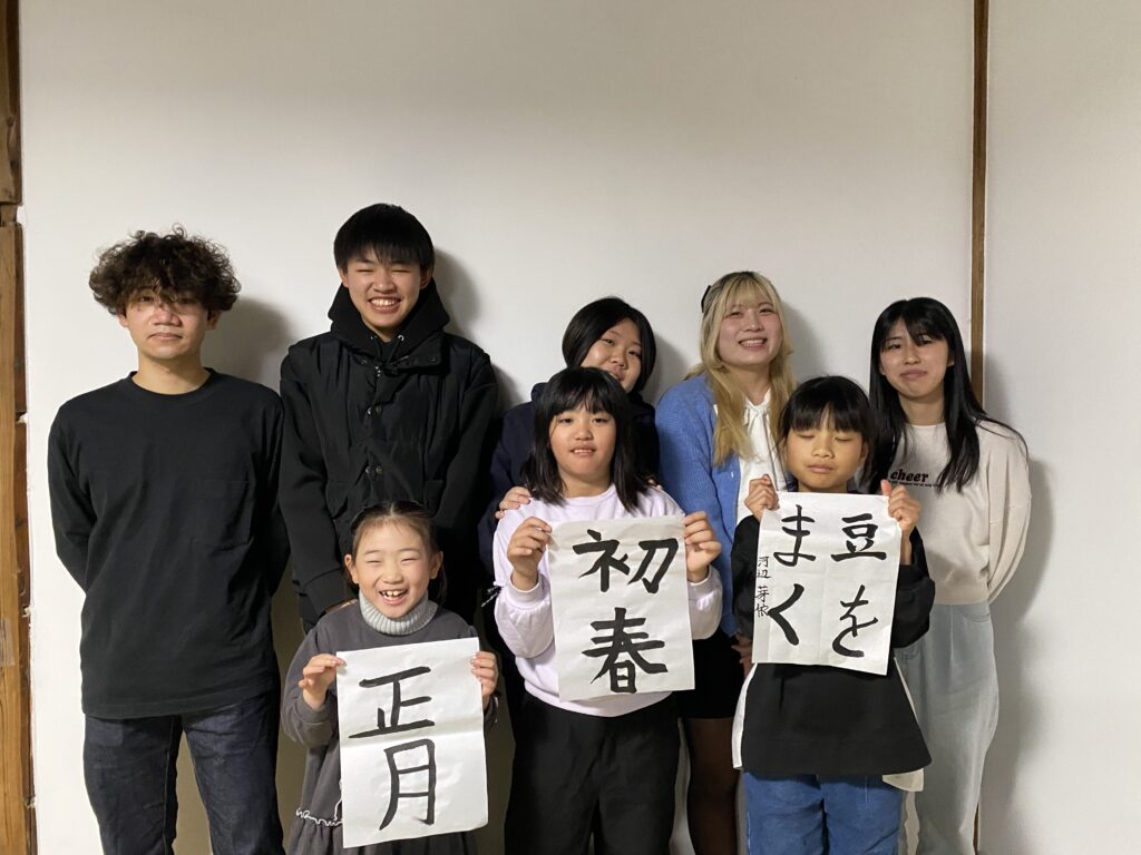 教育学科と健康科学科のボランティア活動を行っている学生が書道教室を開催しました。