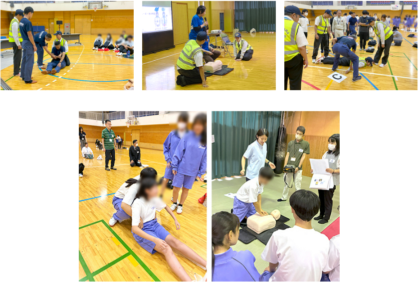 グループ別演習では、3つのグループに分かれて3つの演習(①大規模災害時における避難所のトイレ事情について、②AEDの操作について、③救護法【止血・固定・保温等】)をそれぞれ体験していただきました。