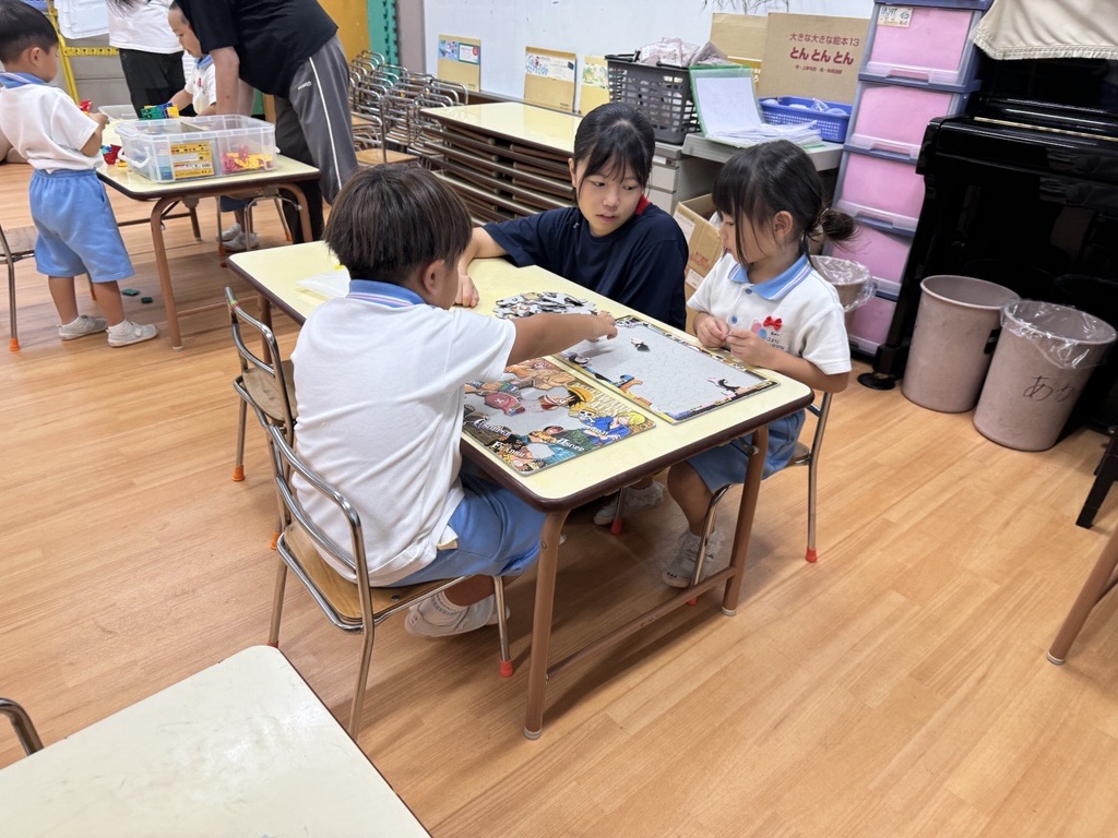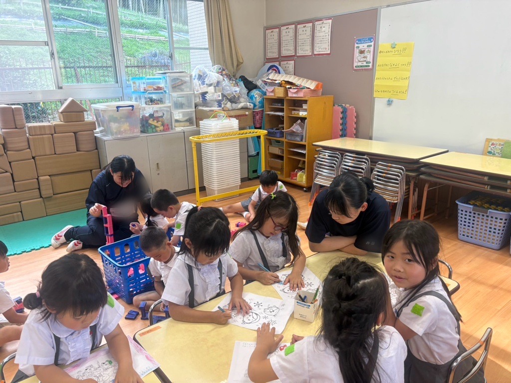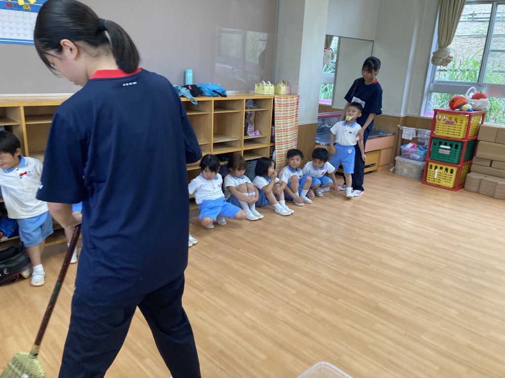 アルバイトの大学生は短大ボランティアと高校ボランティアの子たちに保育の先輩としていろいろなことを教えてくれていました。