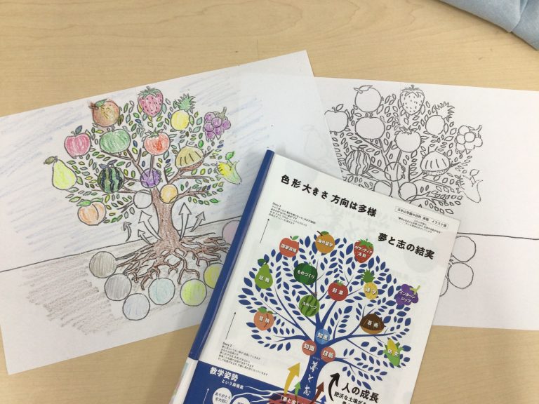 夢と志の結実がイメージしやすくなるようぬりえで「木」に親しみましょう