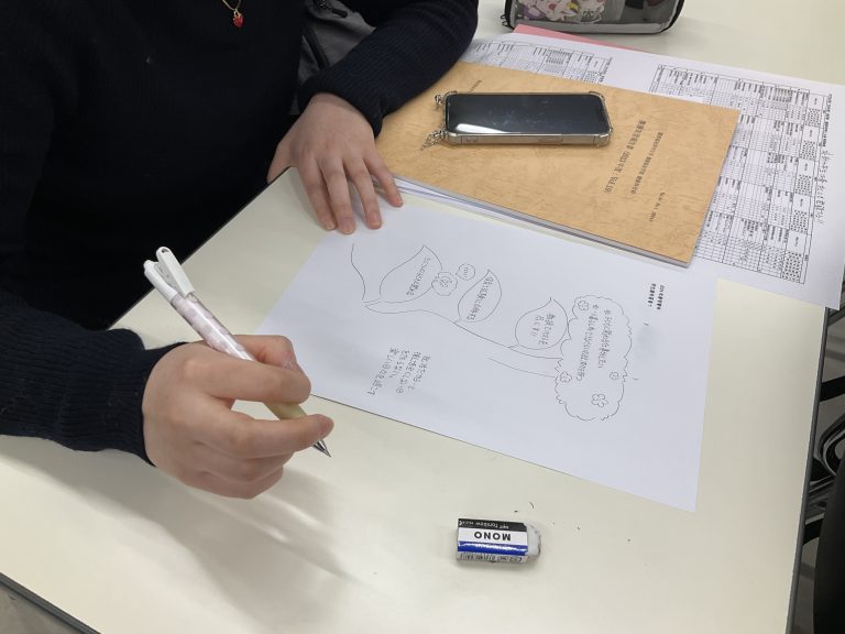 学科のオリエンテーションや初年次教育を行う科目で、一人一人の夢と志の木を描くワークを行いました。この描いた木を用いて、ゼミやAA単位で振り返り面談をしています。