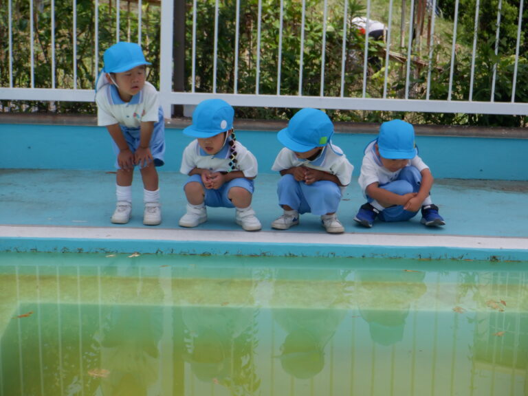 5月… もう少し暑くなったらプールが始まります。お掃除が始まる前のプールにはいろいろな生き物がいっぱい!