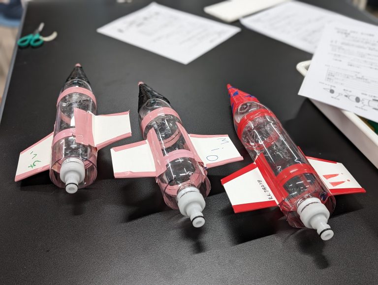 ペットボトルロケットを作り、高等学校のグラウンドで飛ばします。 夏休みの思い出と「夢と志」を持つきっかけにしてもらいたいと思っています。