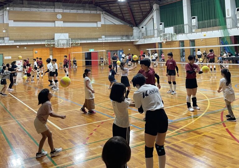 柏原市在住の小中学生対象に女子バレーボール部主催でバレーボール教室を開催しています。おもしろい!楽しい!また来たい!を大切にしています。